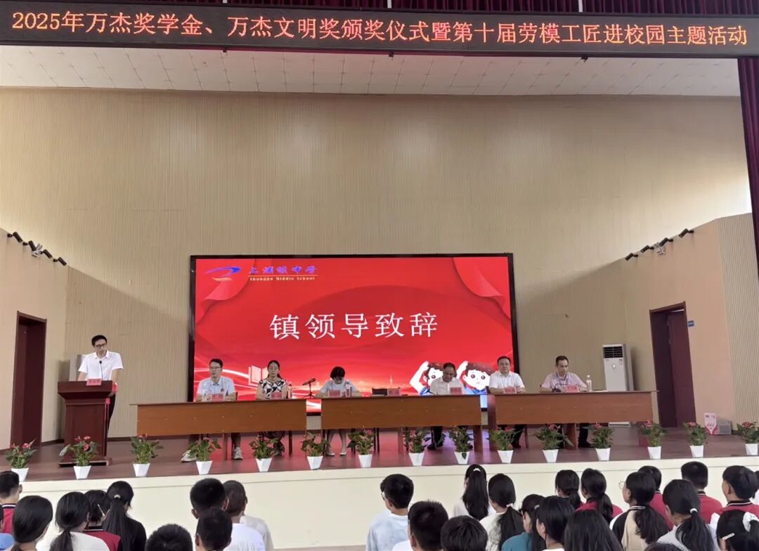 9月9日,上虞区上浦镇第二十二届“万杰奖学金文明奖颁发暨第十届劳模工匠进校园活动”顺利举行,上虞万杰制冷配件厂董事长樊德洪作为活动核心推动者,以20余年助学善举与亲身经历,为师生传递教育情怀与工匠精神。